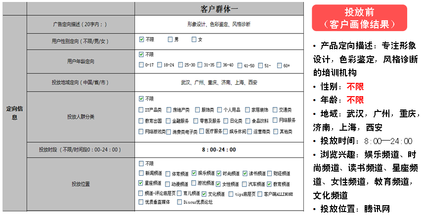 3.四季色彩网络在线报名:筛选意向人群进行广告投放情景匹配,引导报名。