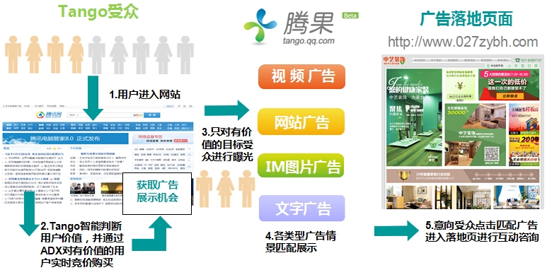 投放平台及方式:腾讯效果营销平台上全资源投放文字,图片, flash广告展示;点击广告进入官网页面