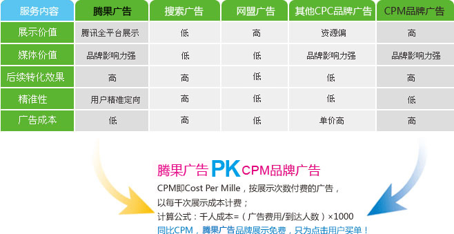 腾果是腾讯推出的基于点击效果付费,通过参与竞价来获取每次广告展现机会的广告服务平台。平台包含了腾讯广告资源和Discuz联盟资源。